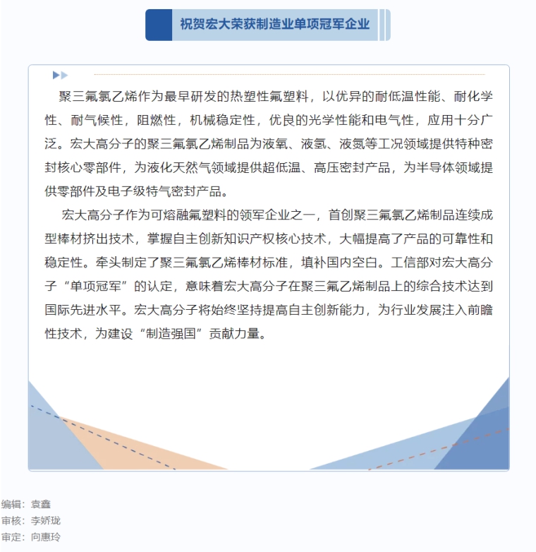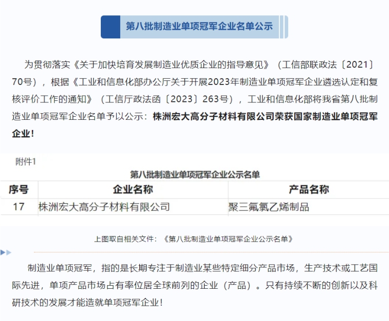 喜報(bào)|制造業(yè)單項(xiàng)冠軍企業(yè):宏大高分子再添國字號榮譽(yù)!